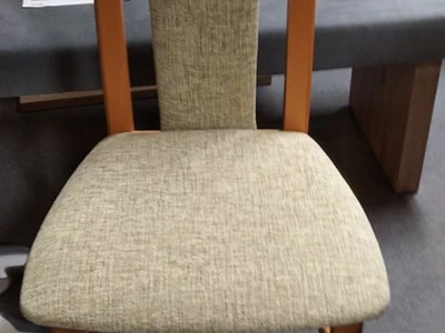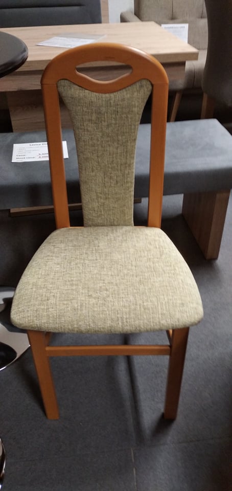 Klasická jídelní židle s čalouněným sedákem i opěrem.