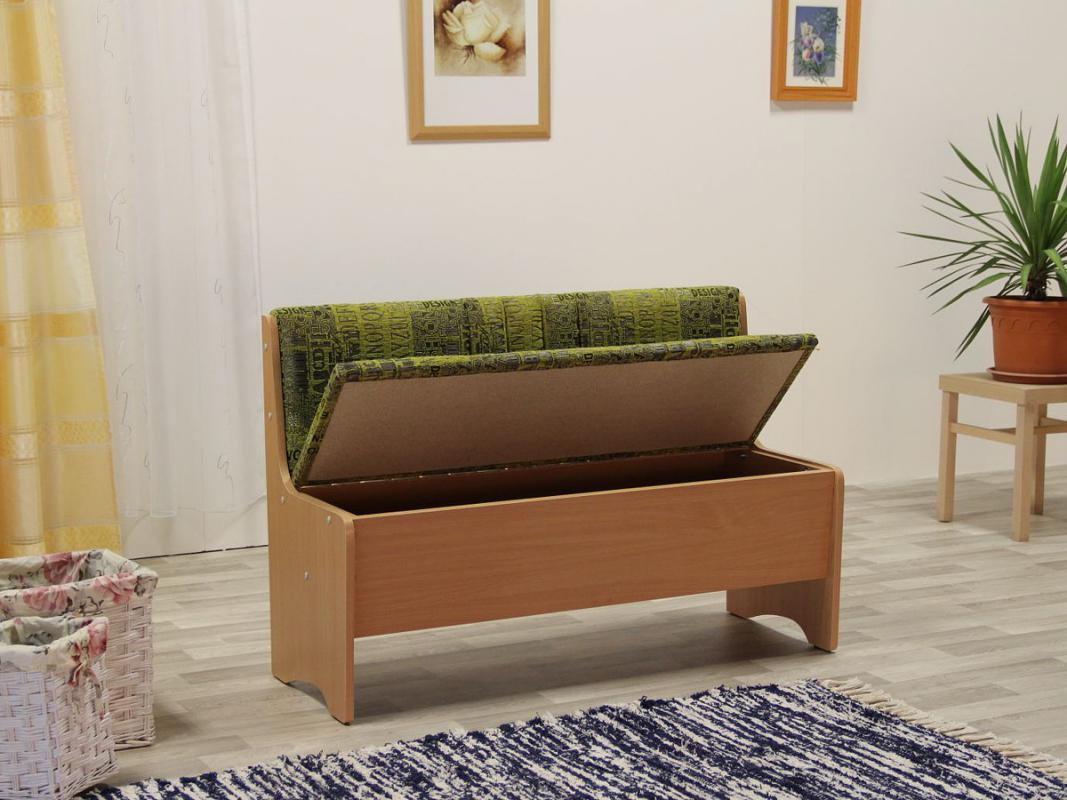Jednoduchá čalouněná kuchyňská lavice s úložnými prostory. Povrch úložných prostorů a nohy jsou vyrobeny z lamina. Kostra lavice je tvořena kombinací masivu a velkoplošných materiálů. Čalounění je tvořeno PUR pěnou.