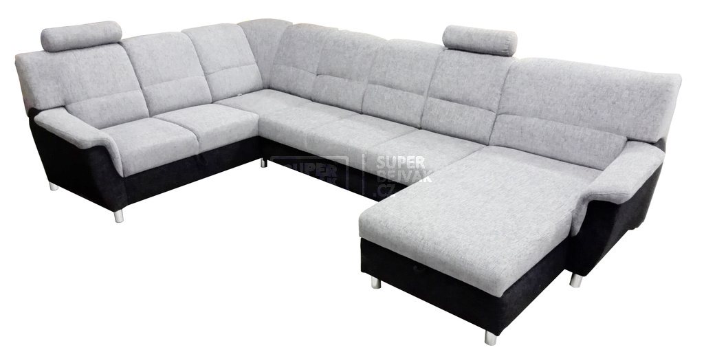 Celočalouněná sedací souprava, kde díky jednotlivým prvkům lze dosáhnout velké variability jednotlivých sestav, které mohou být rozkládací, s úložným prostorem.