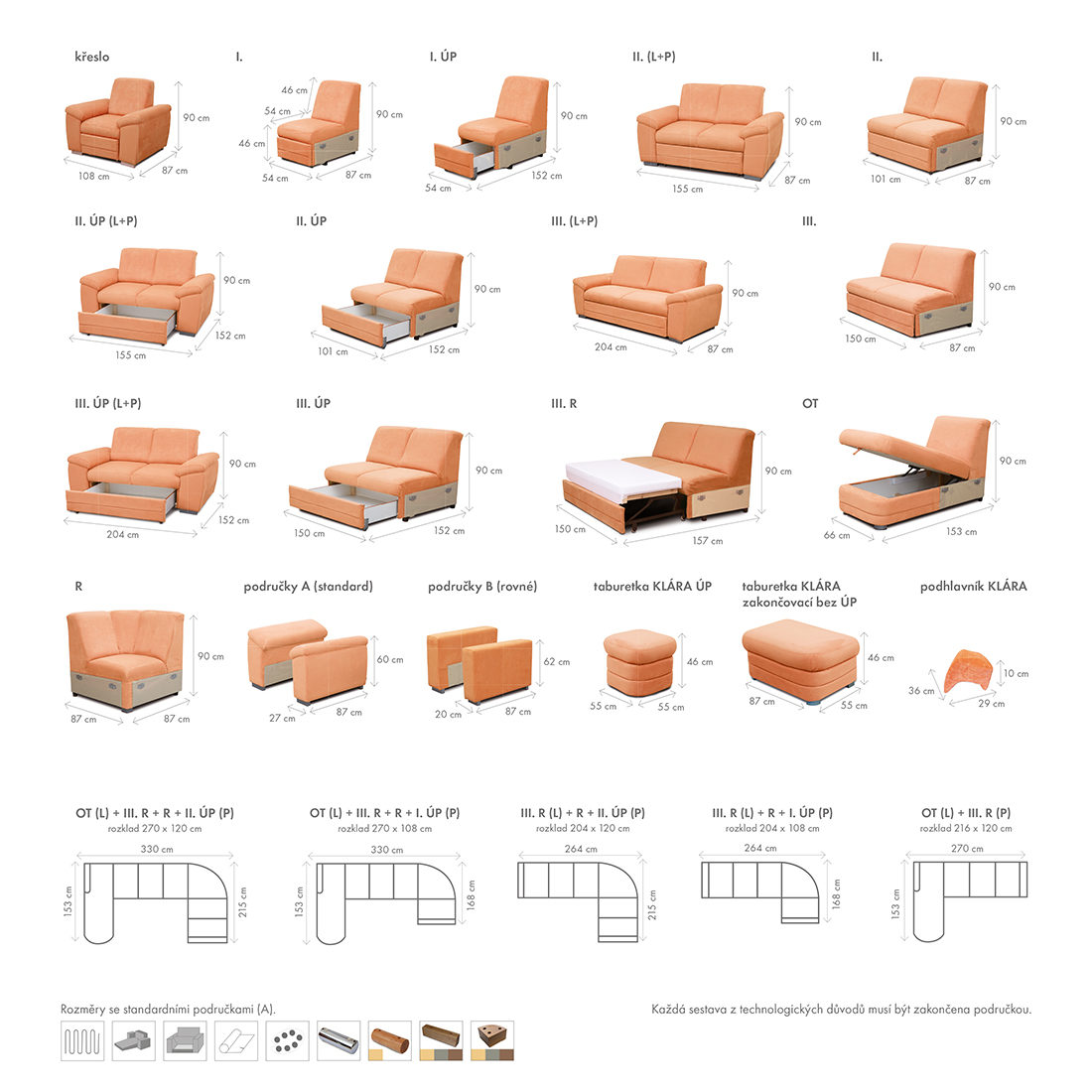 Sedačku Vám nacení na prodejně dle zvolené sestavy a potahové látky.