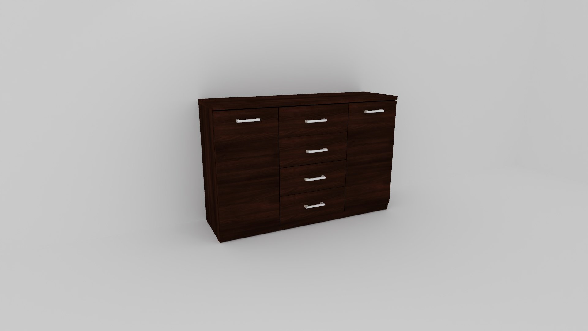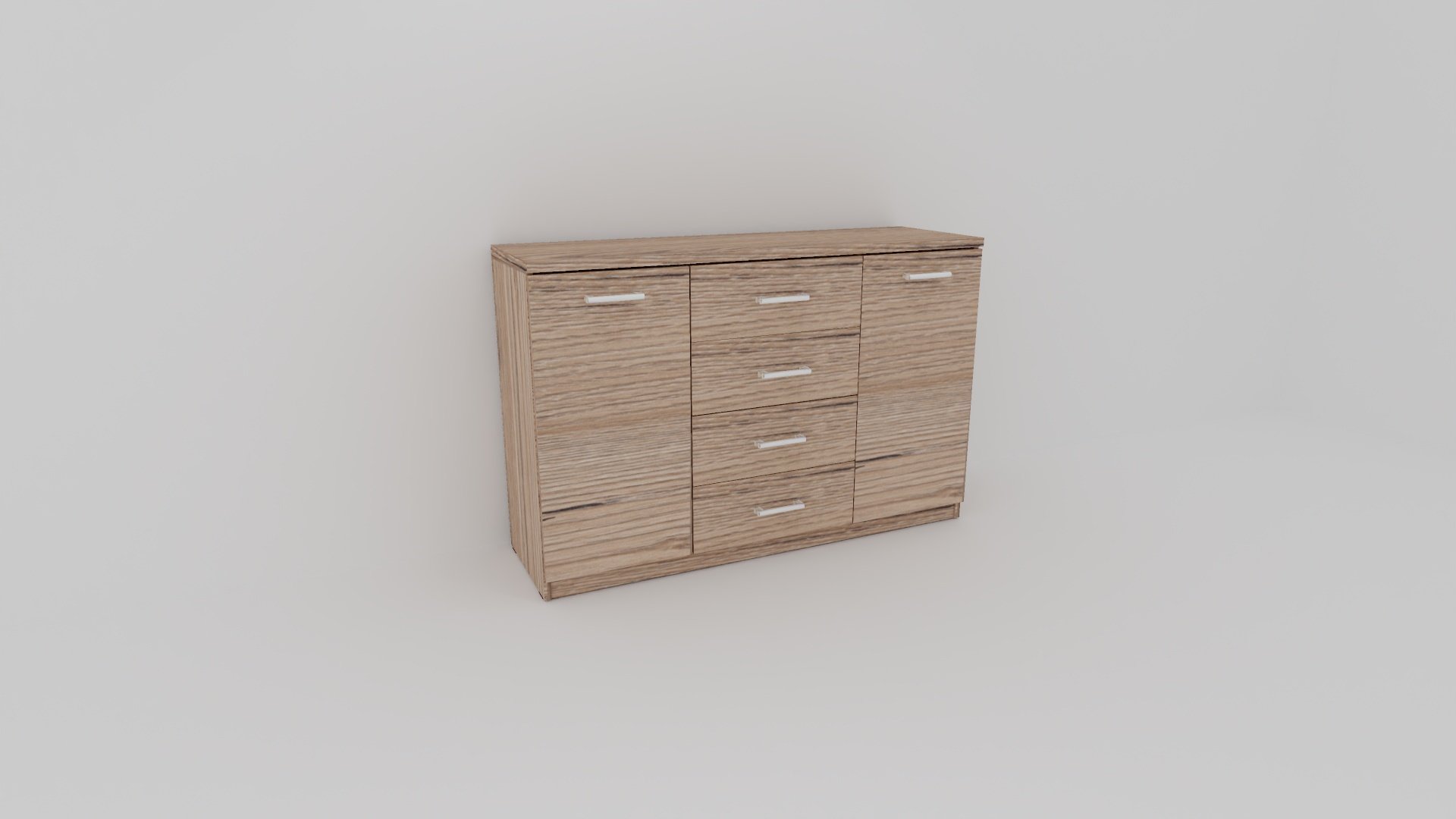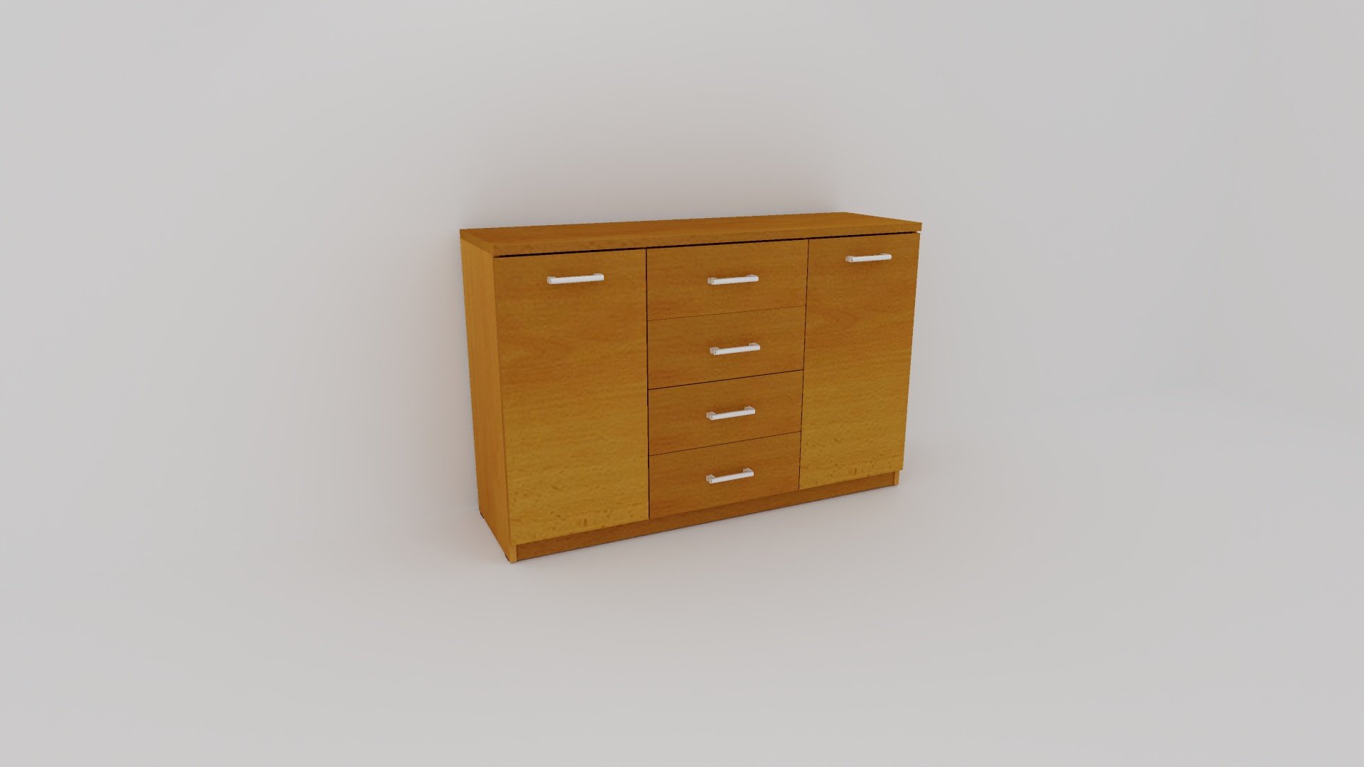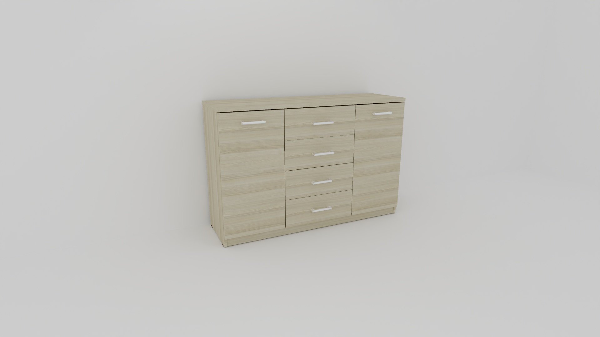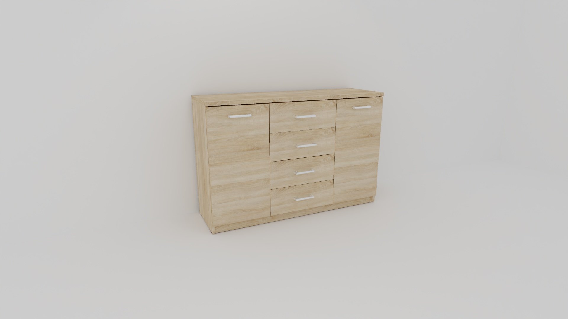 Komoda s dvířky a šuplíky. Svým designem odlehčí prostor, kterým tak navodí pocit vzdušnosti celé místnosti.