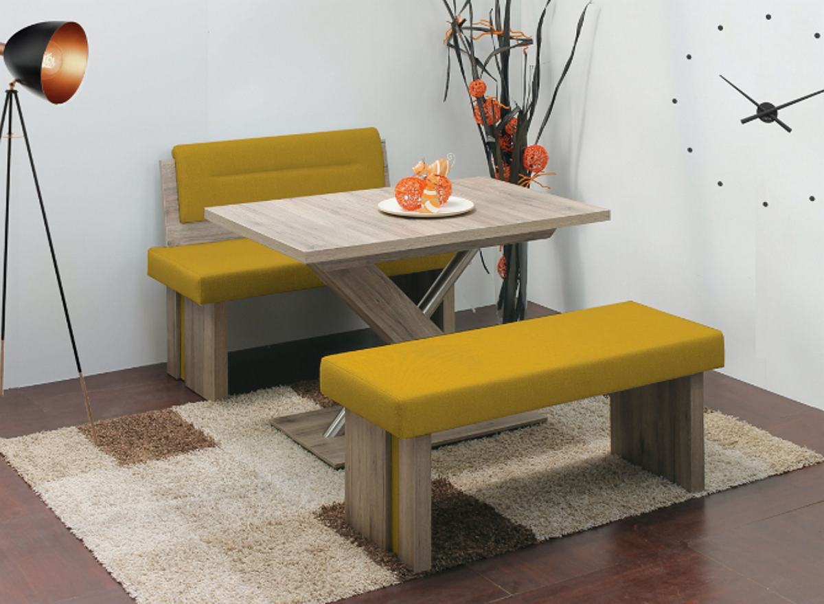 Lavička v moderním provedení se vyrábí ve třech velikostech, 120cm, 140cm, 160cmVyznačuje se moderním bokem lavice. Aplikace na boku lavice je v látce sedáku, proto sedák lavičky musí být vždy jednobarevný.