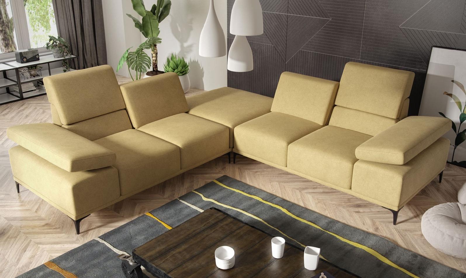 Vysoký komfort sezení zajišťuje pružinový sedák - typ bonell. Inovativní systém opěrných polštářů, lze díky specifickým profilům zvednout do vyšší pozice. Souprava je navíc opatřena polohovacími područkami.