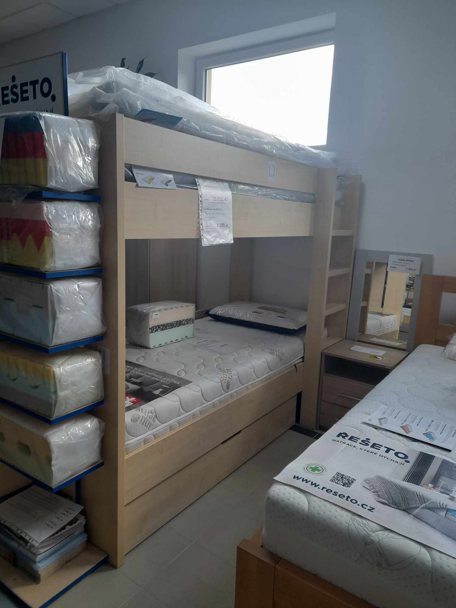 Tuto postel máme vystavenou na prodejně ( v pravé i levé variantě - dekor javor)