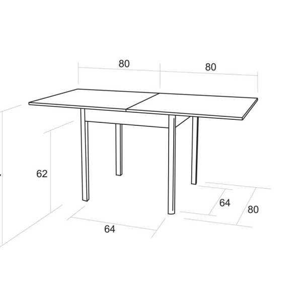 - Rozměr: délka 80/160cm, šířka 80cm, výška 77cm, rozteč mezi nohama stolu 64cm/ 64cm