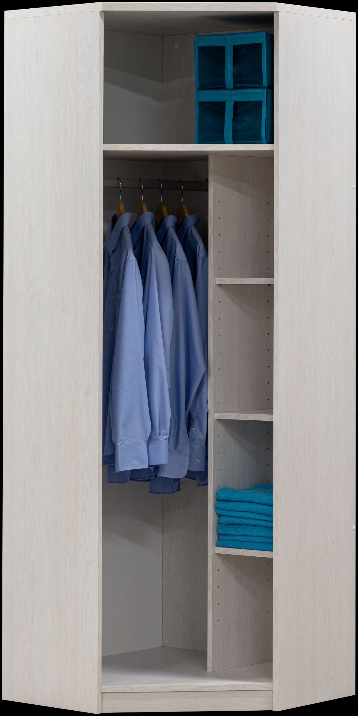 Naprosté využití prostoru. Prostorná rohová skříň, která dokonale zapadne do místnosti