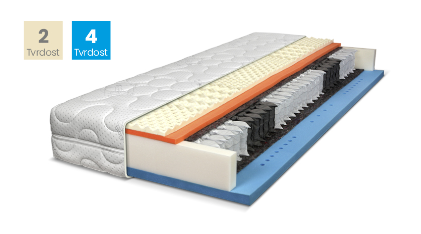 Vysoce komfortní matrace z taštičkových pružin a kvalitních pěn. Jednu stranu tvoří perforovaná latexová deska, druhá strana je z vysoce kvalitní studené pěny ULTRA FRESH. Pro dokonalou vzdušnost jsou pěny opatřeny otvory nejnovější technologií „ŘEŠETO“. Matrace je vhodná pro vyšší váhové zatížení při zachování maximálního komfortu a dokonalé relaxace.